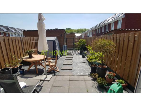 De woonverdieping biedt een tuingerichte woonkamer met veel lichtinval. Middels de schuifpui bereikt u de diepe achtertuin met berging en een achterom. Het gemak van een buitenkraan is aanwezig.