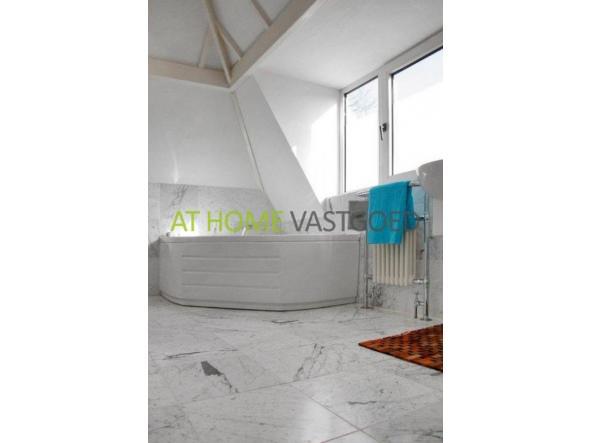 Tweede verdieping: ruime overloop met grote bergkasten, ruime slaapkamer en de tweede luxe badkamer met toilet en whirlpool!