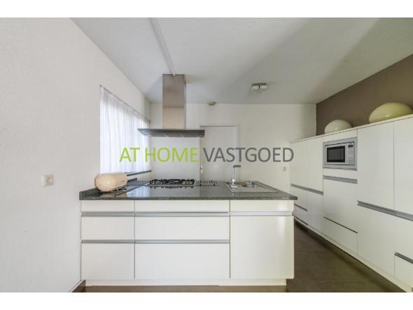 begane grond: entree, hal met vide voorzien van plavuizenvloer met vloerverwarming, trapopgang naar de verdieping, meterkast (7 groepen-aardlekbeveiligd), volledig betegeld hangcloset met fonteintje en vloerverwarming, studeer/logeerkamer (3.40X4.70m) voorzien van mozaïekparket met toegang tot de betegelde badkamer (maart 2009) voorzien van douche , hangcloset, vaste wastafel, designradiator en opstelruimte voor de wasapparatuur. De U-vormige woonkamer (ca. 55m2) voorzien van plavuizenvloer met vloerverwarming, houtkachel en aangebouwde serre met veiligheidsglas, halfopen luxe keuken met kookeiland voorzien van alle apparatuur. Bijkeuken voorzien van plavuizenvloer met vloerverwarming waarin de c.v.-ketel (december 2008) is geplaatst en wasmachineaansluiting. In de bijkeuken is ook de toegang tot de kruipruimte waarin het expansievat van de c.v. is geplaatst. Aangebouwde garage voorzien van elektra, kanteldeur en deur naar de tuin.