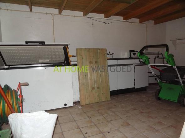 De L-vormige woonkamer is ruim opgezet en voorzien van een houten vloer, via de woonkamer is de keuken te bereiken welke is voorzien koelkast, vriezer, gasfornuis, magnetron en afzuiger. Het 1e toilet is via de gang te bereiken. Tevens bevindt zich beneden een grote bijkeuken met vrieskist, deze ruimte is uitermate geschikt als opslag.