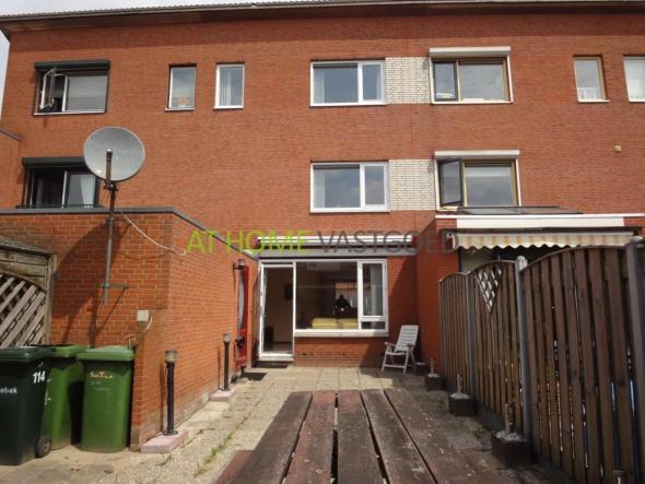 Tuin : betegelde tuin , berging , te bereiken vanuit de woonkamer en achterzijde van de tuin.