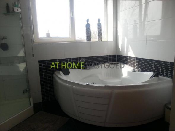 zeer complete en volledig betegelde badkamer welke voorzien is van een fraai WHIRLPOOL