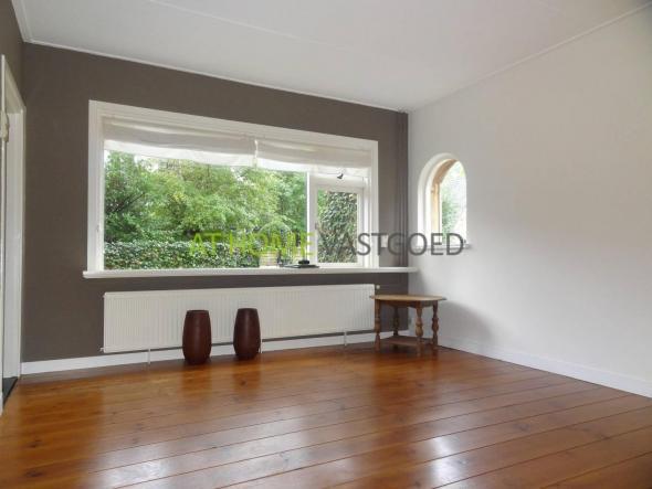 Toegang tot de woonkamer, voorzien van laminaat vloer en grote ramen.