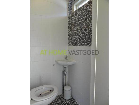 Ground floor: entrance, hall with toilet, staircase to the first floor, access to living room. Spacious and bright living room provided with a nice laminate floor and sleek open kitchen. The beautiful open kitchen (one year old) is equipped with: fridge, freezer, oven, microwave, dishwasher, 5 - burner gas cooker with wok burner, cookerhood and bar. The kitchen gives access to the garden facing east, the garden with shed is also accessible through a round the back.
