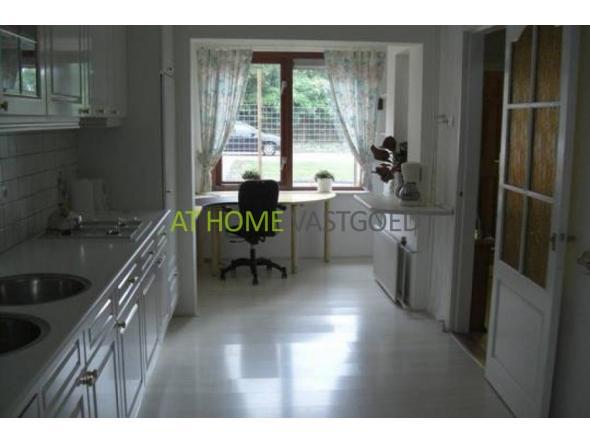 Begane grond: Bij binnenkomst in de ruime hal kunt u linksaf naar de ruim opgezette woonkamer die over zeer veel lichtinval beschikt. Vanuit de ruime hal kunt u ook naar het beneden toilet en de keuken. De keuken is voorzien van alle gemakken zoals vaatwasser, magnetron en kookplaat. in de keuken bevindt zich ook een werkruimte/kantoor en een eetgedeelte met 6 zitplaatsen. Vanuit de keuken kunt u naar de zeer ruime achtertuin en de bijkeuken met wasmachine, droger en extra koelkast. Hiernaast heeft de bijkeuken een badkamer met een luxe whirlpool-bad en een douchecabine.