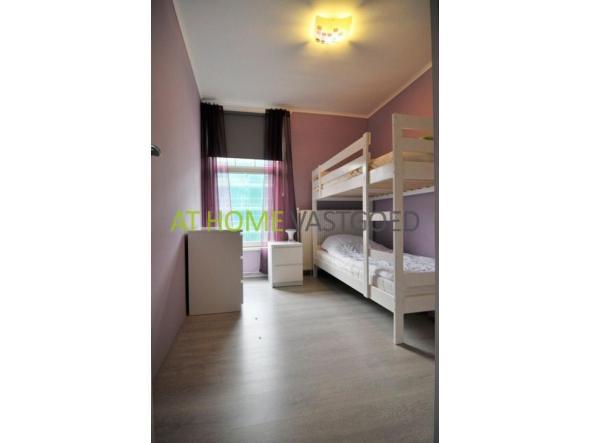 De overloop geeft toegang tot 2 slaapkamers van 3.10 x 3.80m en 3.80 x 2.50m, en de badkamer van 2.16 x 1.90m, voorzien van een douche cabine, wastafel meubel en de wma.