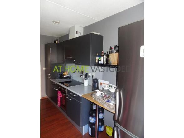 Wasruimte met aansluiting voor de wasmachine, bergruimte en mechanische ventilatie unit.Dichte keuken met keuken in parallelopstelling met koel-/vriescombinatie, keramische kookplaat, afzuigkap, oven, magnetron en vaatwasser.