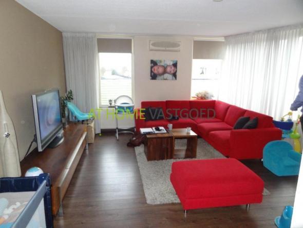 De woonkamer is voorzien van een zeer ruim balkon welk in 2009 voorzien is van nieuwe terrastegels. Aan de zijde van de openslaande deur is een ruime ronding, waar u een zitje kunt plaatsen. Langs de verdere breedte van de woning loopt het balkon ook nog volledig door.