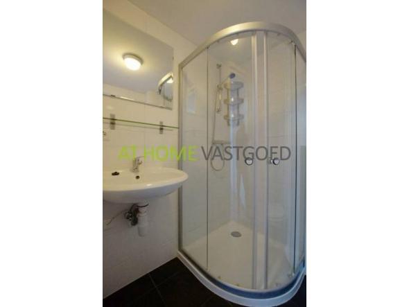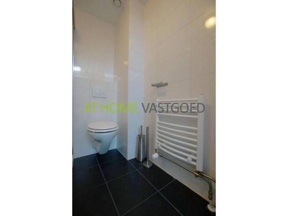 - Badkamer met douche, toilet, wastafel en wandradiator.