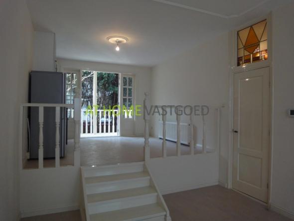 Vanuit de hal komt u in de mooie riante woonkamer die voorzien is van een prachtig helemaal nieuw laminaatvloer (jan de bouvrie), mooi hoog plafond, dubbele beglazing, centrale verwarming. Vanuit de woonkamer gaat u met een trapje naar boven daar komt u in de mooie open keuken die van alle gemakken voorzien is 4-pitsgas kookplaat, koelkast, vriezer, vaatwasser, afzuigkap. Vanuit de keuken komt u met openslaande deuren op de mooie veranda wat uitkijkt op de tuin. Slaapkamer I kan als studeer kamer worden gebruikt maar ook als slaapkamer. Met een trap naar beneden komt u in de mooi uitgeruste badkamer die voorzien is van een splinter nieuwe douche cabine en helemaal mooi betegeld is met natuurstenen en spotjes. De ruime slaapkamer II is ook voorzien van spotjes en nieuw laminaatvloer.