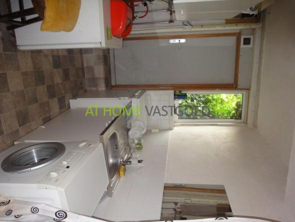 BG: gezamenlijke entree, keuken met koelkast, gaskookplaat en wasmachine, douche, separaat toilet, trapopgang naar de eerste etage.